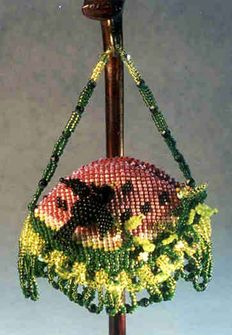 Open the little beaded pod purse by squeezing the ends, and it will hold a tiny treasure for you. The moveable beaded ladybug magnet will grab your needle while you bead in style.